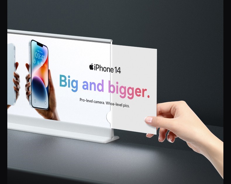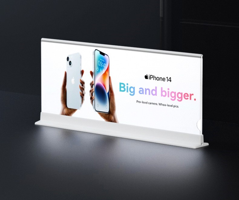 A slim, double-sided illuminated display that delivers high-impact messaging while saving valuable counter space.